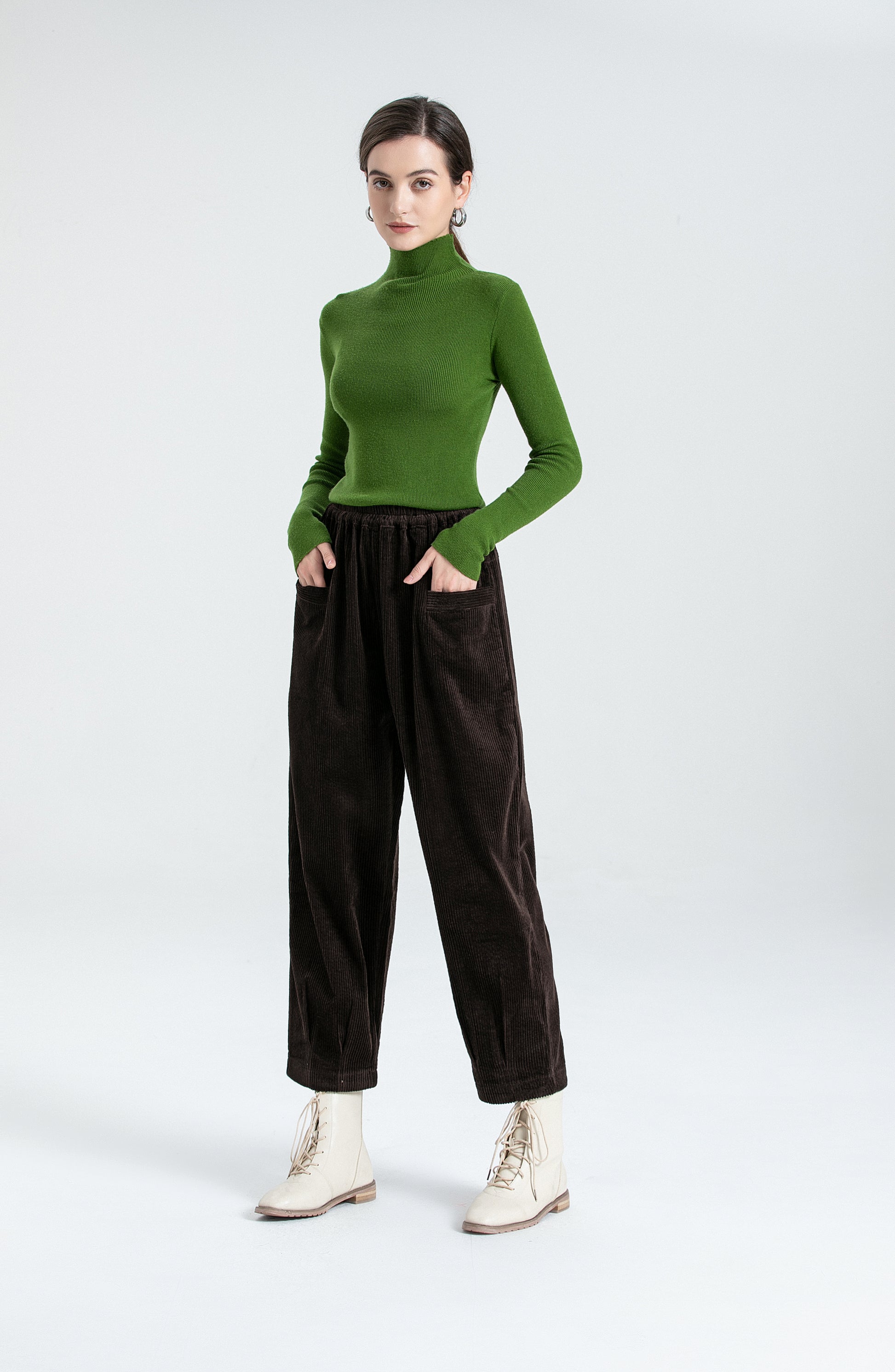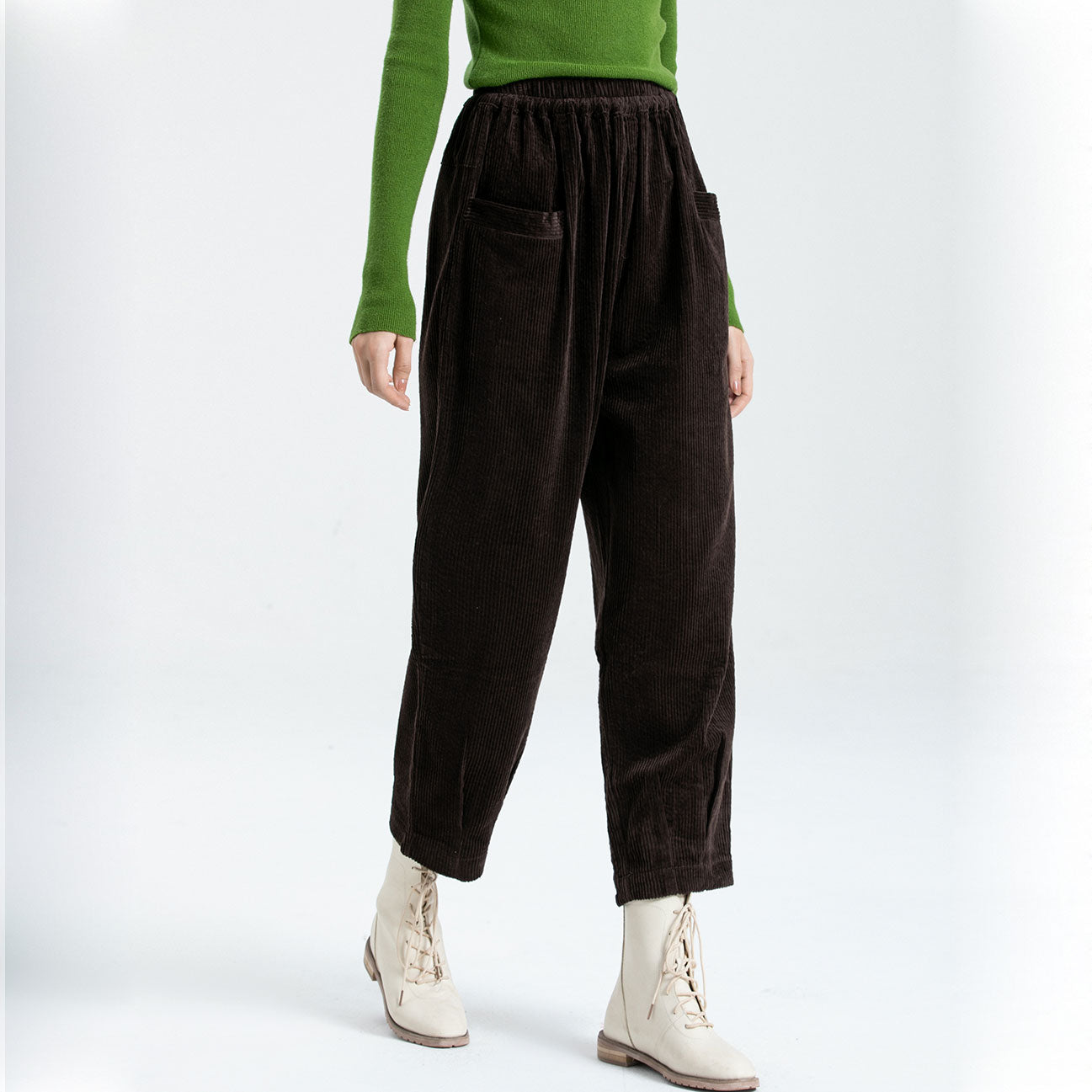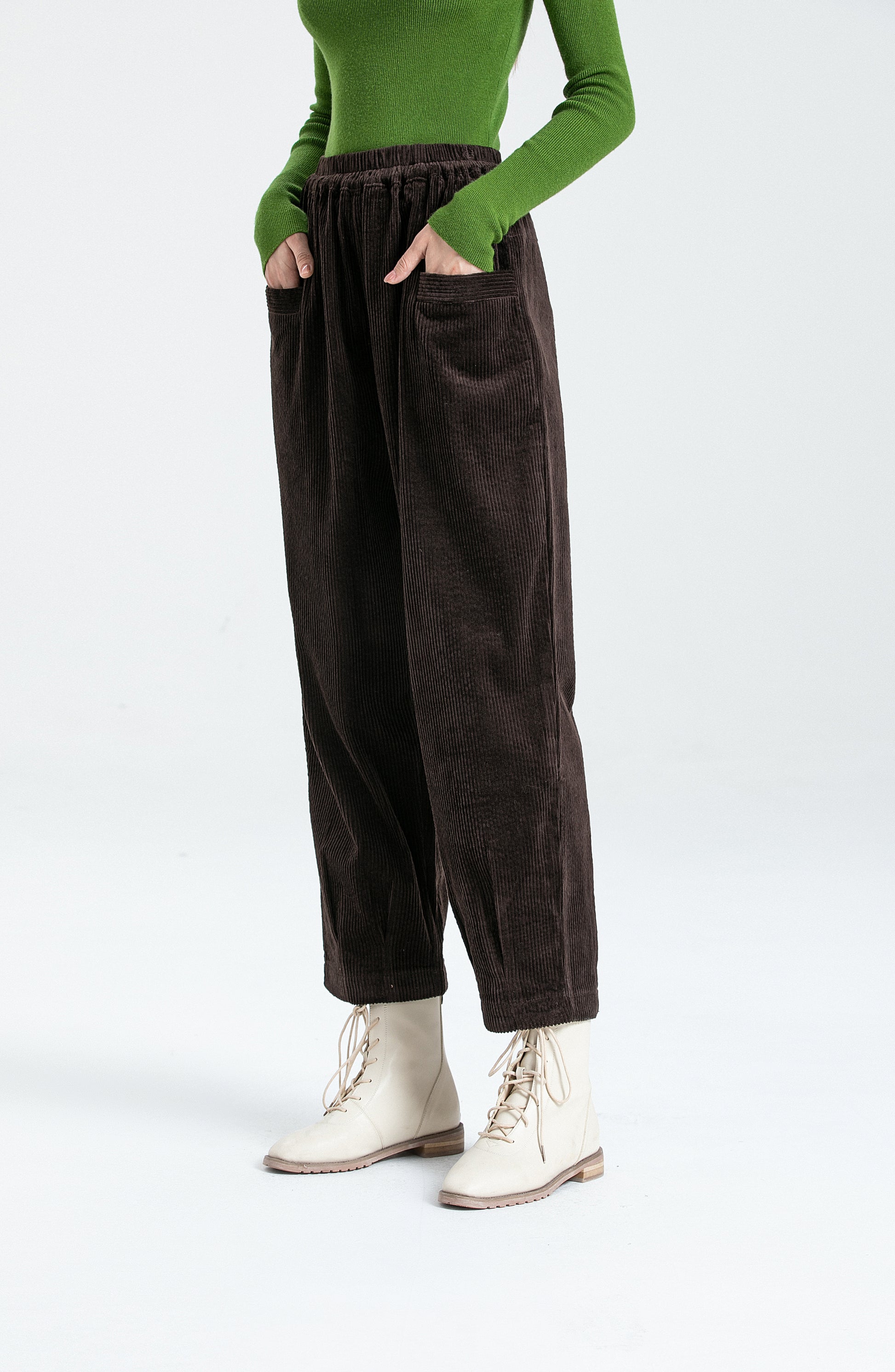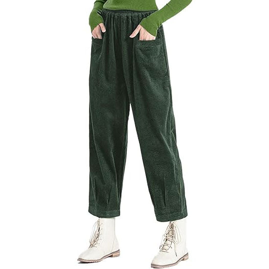 - Material: Women's cotton pull on trousers, made of soft and warm, slightly stretched corduroy fabric, comfortable to wear