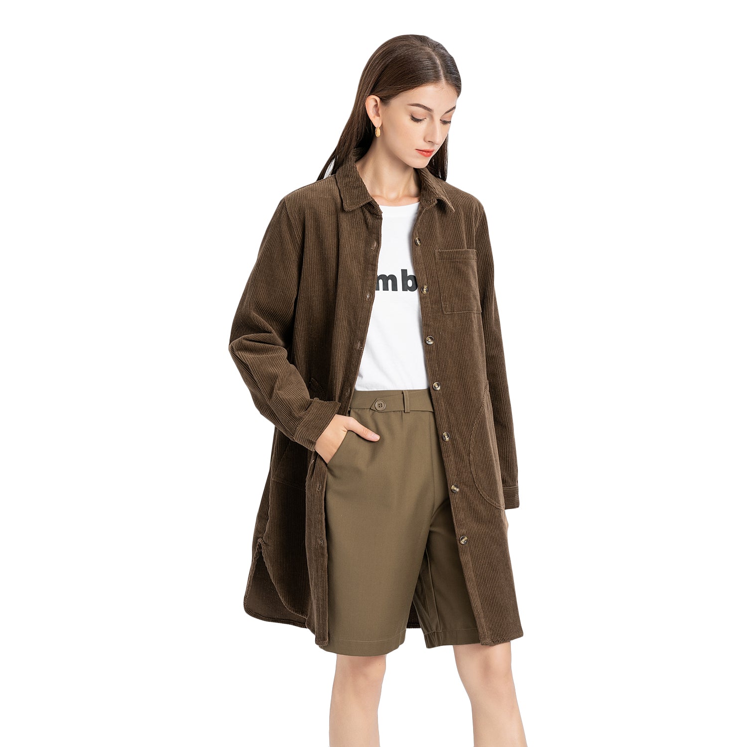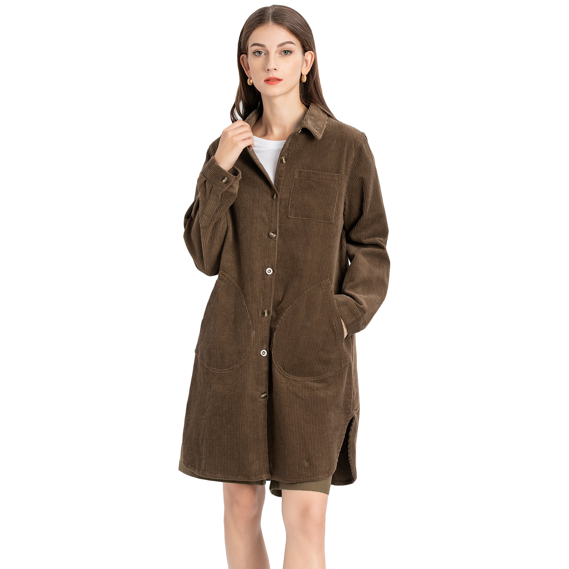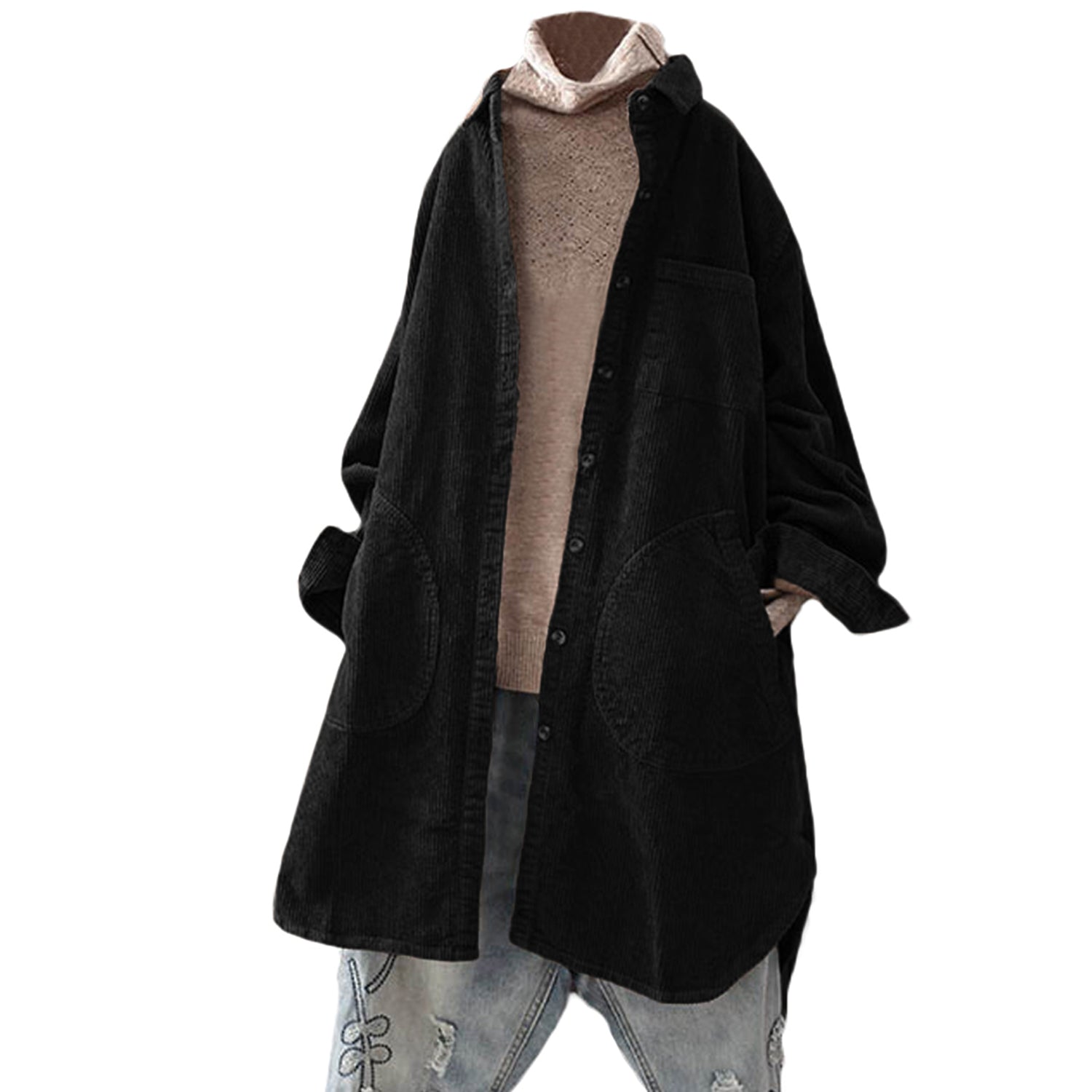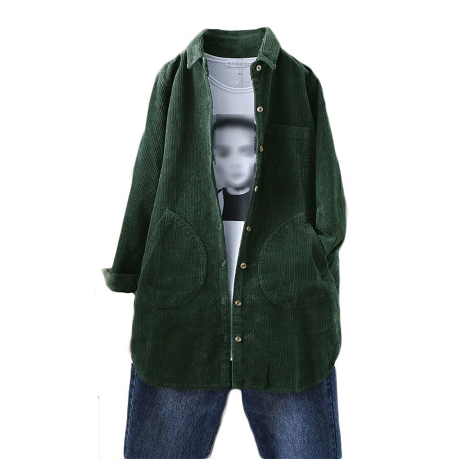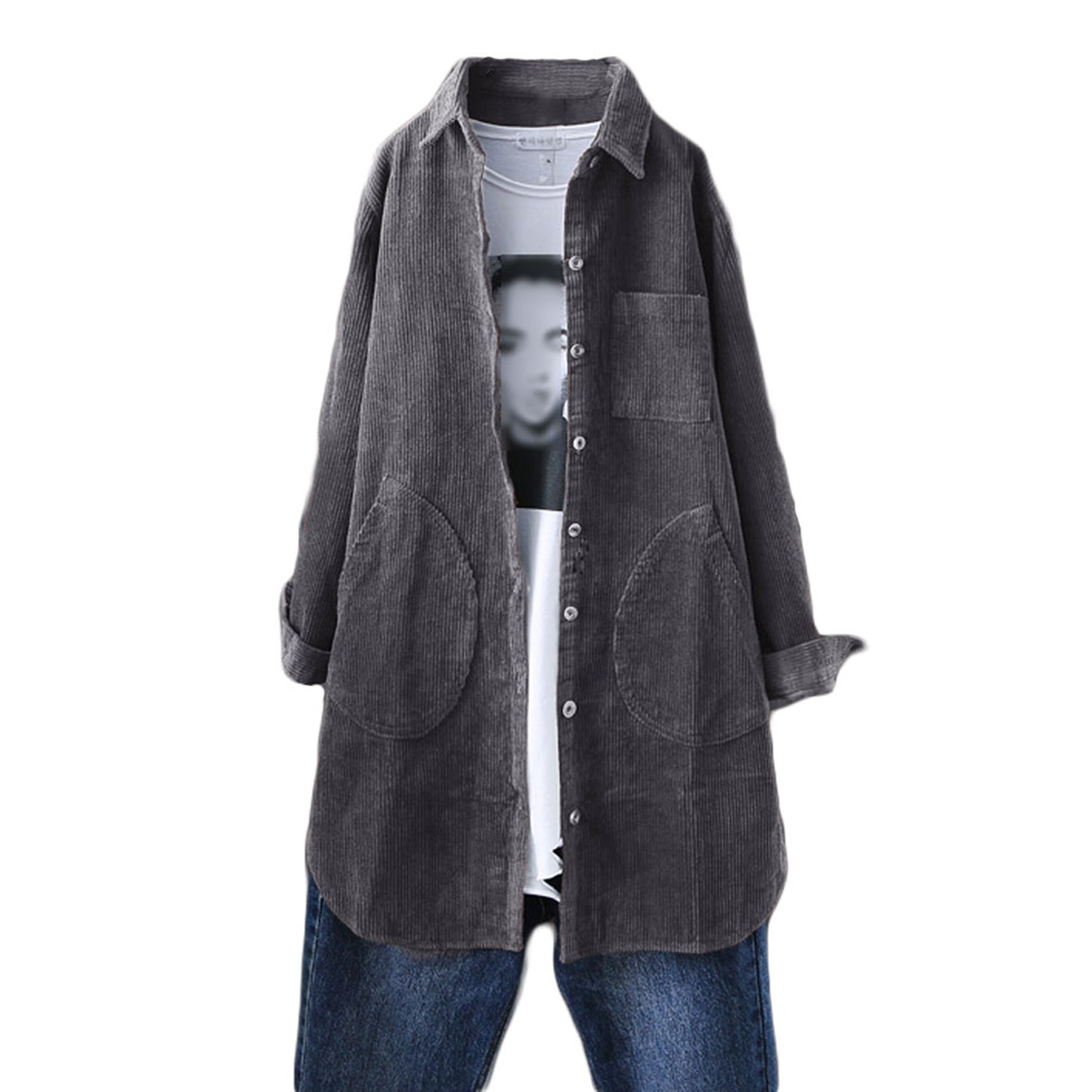 Minibee Women's Corduroy Shirt Coats Long Sleeve Button Down Blouses Tops with Pockets