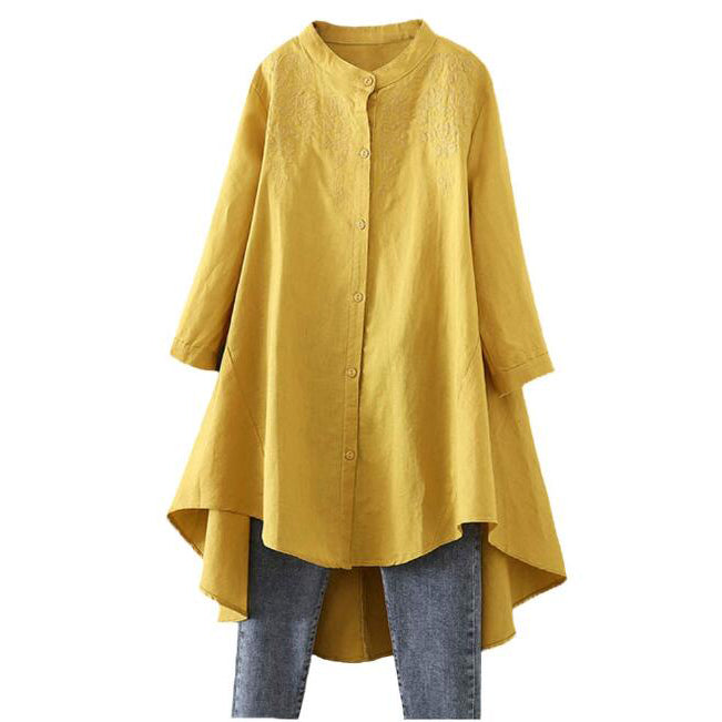 - High low tops for women, linen shirts for women,embroidered blouse tops for women,new fall cotton tunics,linen button down shirt women