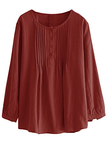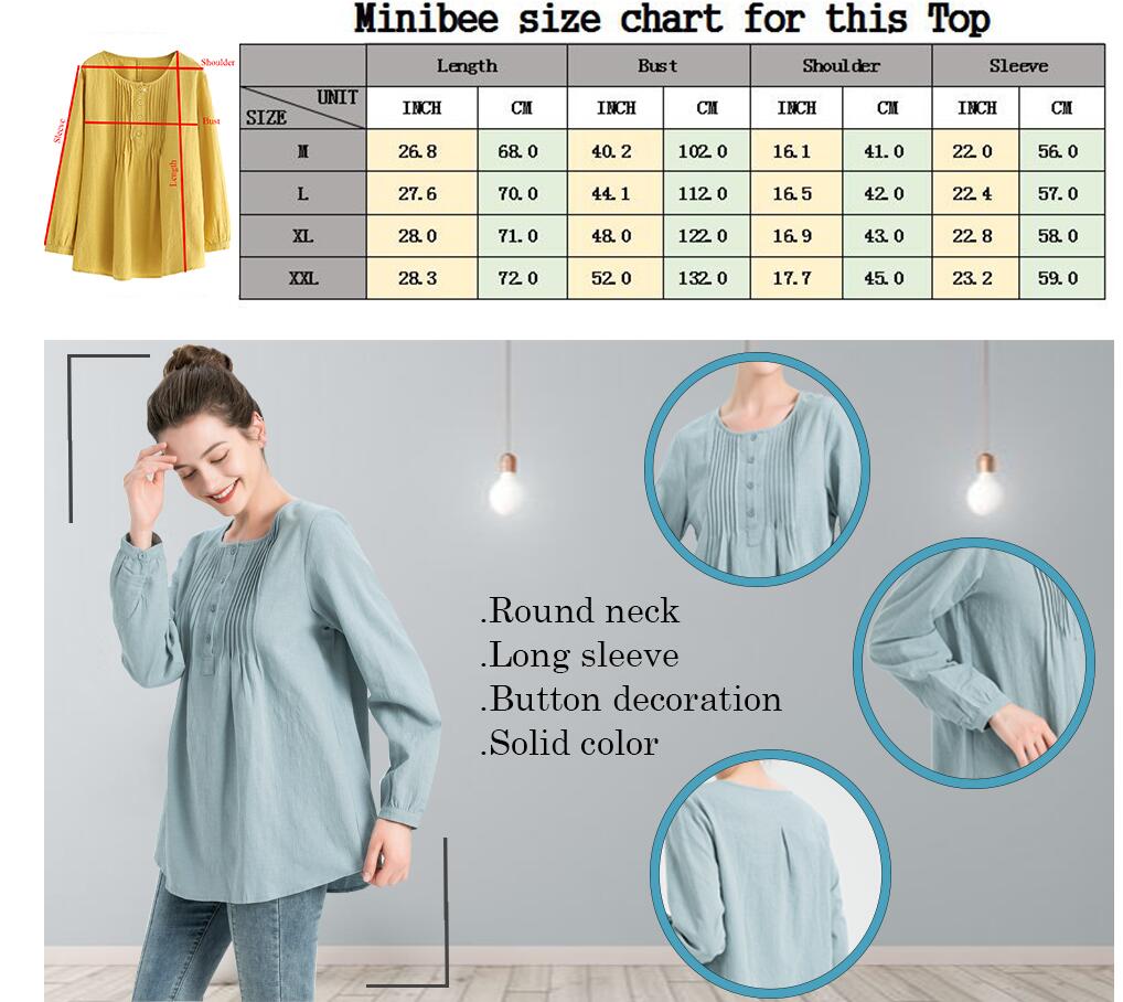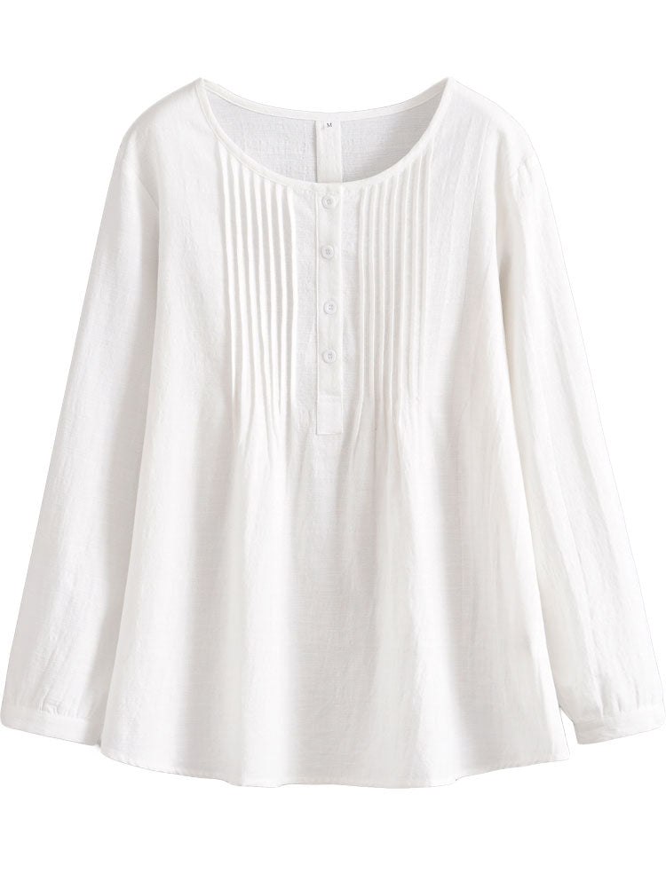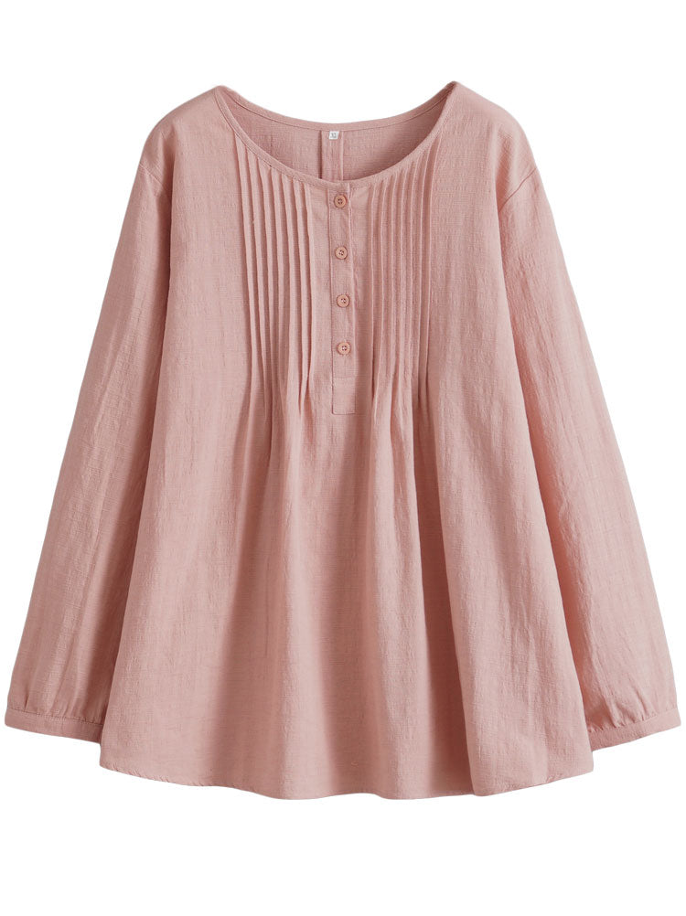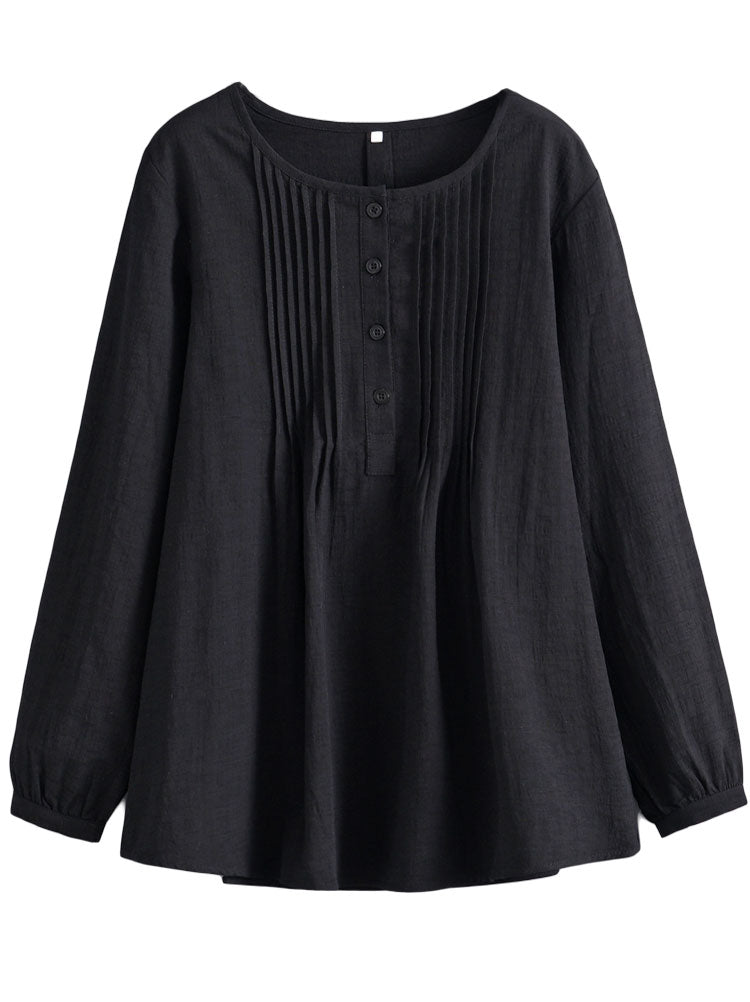 - new Solid color linen tops, linen blouse, button down shirts, long sleeve with round neck, front four button and pleated design, linen tops for women